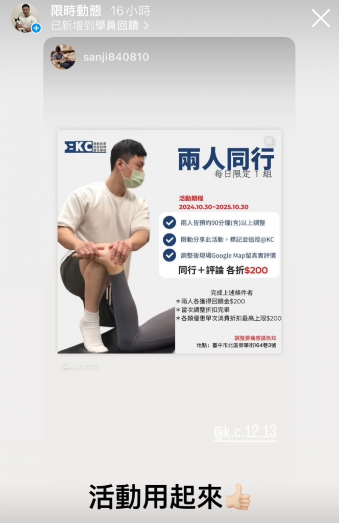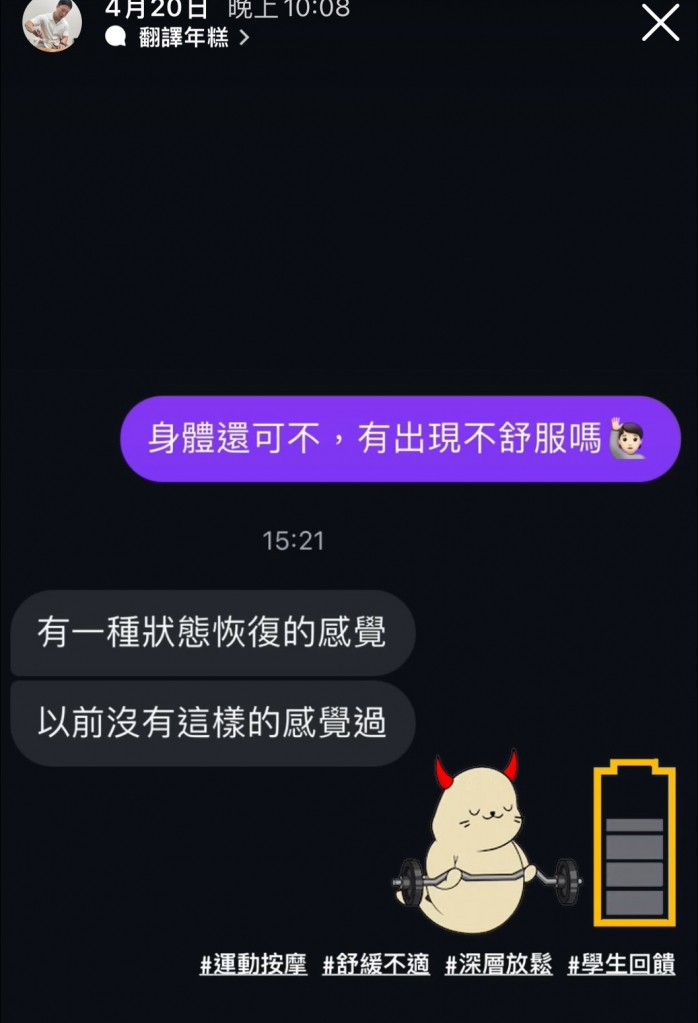 學員回饋 > 學生推薦/崇德路按摩 > 運動按摩/張力調整